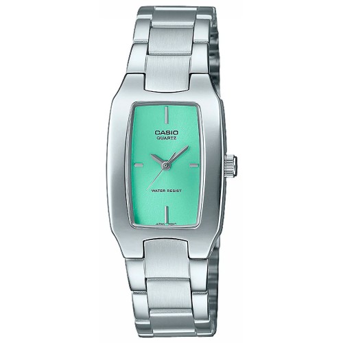 Женские кварцевые часы. Центральные часовая, минутная и секундная стрелки. Циферблат изумрудного цвета. Корпус выполнен из нержавеющей стали. Стальной браслет, раскладывающаяся застежка. Прочное минеральное стекло устойчивое к мелким механическим повреждениям. Водостойкость WR 30 (брызги).