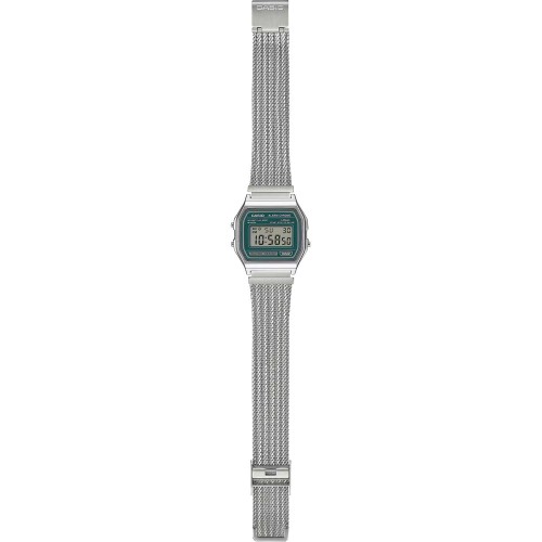 Электронные часы. Светодиодная подсветка. Секундомер с точностью показаний 1/100 секунды. Будильник. Ежечасный сигнал. Автоматический календарь. 12/24х часовой формат времени. Корпус выполнен из полимерного материала. Стальной браслет выполнен в технике миланского плетения, раскладная застежка. Акриловое стекло. Водостойкость WR 30 (брызги).