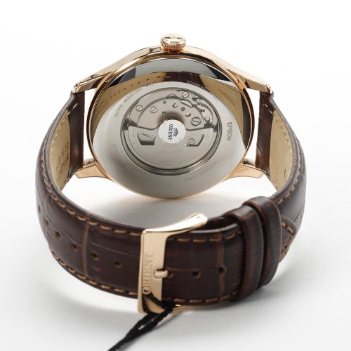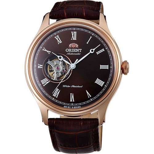Мужские механические наручные часы Orient AG00001T (FAG00001T0) с автоподзаводом и возможностью ручного завода. Коллекция Automatic. Калибр механизма — AC(F6T). Запас хода более 40-ка часов. Количество камней - 22. Функция стоп-секунда (остановка секундной стрелки для установки точного времени). На циферблате прозрачное окошко, через него частично видно работу механизма. На корпус нанесено стойкое PVD. Завинчивающаяся прозрачная задняя крышка. Водонепроницаемость WR50 (5 атм). Сферическое стекло.