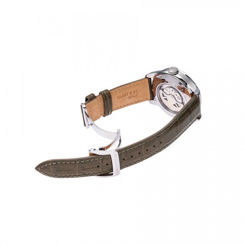 Механические часы с автоподзаводом. Открытый баланс хода. Запас хода на 50 часов. Водостойкость WR 100 (плавание без погружения). Центральные часовая и минутная стрелки. Секундная стрелка вынесена на отдельный циферблат. Циферблат с часовыми индексами в виде штрихов и цифр. Корпус выполнен из нержавеющей стали. Устойчивое к возникновению мелких механических повреждений сапфировое стекло с антибликовым покрытием. Прозрачная задняя крышка. Кожаный ремешок коричневого цвета.
