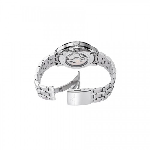 Лимитированная серия. Механические часы с автоподзаводом. Открытый баланс хода. Запас хода на 50 часов. Водостойкость WR 100 (плавание без погружения). Центральные часовая и минутная стрелки. Секундная стрелка вынесена на отдельный циферблат. Циферблат с часовыми индексами в виде штрихов и цифр. Корпус выполнен из нержавеющей стали. Устойчивое к возникновению мелких механических повреждений сапфировое стекло с антибликовым покрытием. Прозрачная задняя крышка. Браслет выполнен из нержавеющей стали.