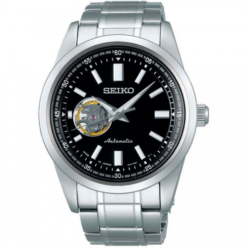 Мужские механические часы с автоподзаводом. Калибр механизма 4R38 на 24х камнях. Частота 21 600 полуколебаний в час. Запас хода на 41 час. Функция остановки секундной стрелки. Центральные часовая, минутная и секундная стрелки. Черный циферблат с открытым балансом хода. Люминесцентные стрелки и часовые метки. Круглый корпус выполнен из нержавеющей стали. Стальной браслет, раскладывающаяся застежка. Закаленное минеральное стекло Hardlex устойчивое к мелким механическим повреждениям. Водостойкость WR 100 (плавание без погружения).