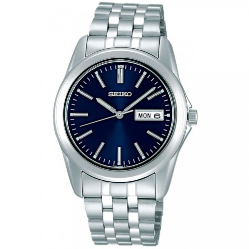 Мужские кварцевые часы. Калибр механизма 7N43. Центральные часовая, минутная и секундная стрелки. Апертура даты и дня недели в позиции 3 часов. Синий циферблат. Круглый корпус выполнен из нержавеющей стали. Заводная головка с защитой. Стальной браслет, раскладывающаяся застежка. Закаленное минеральное стекло Hardlex устойчивое к мелким механическим повреждениям. Водостойкость WR 30 (брызги).