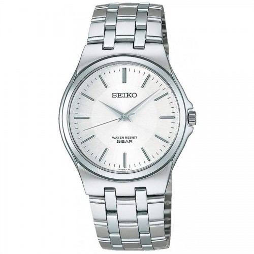 Женские кварцевые часы. Калибр механизма 7N01. Центральные часовая, минутная и секундная стрелки. Светло-серебристый циферблат. Круглый корпус выполнен из нержавеющей стали. Заводная головка с защитой. Стальной браслет, раскладывающаяся застежка. Закаленное минеральное стекло Hardlex устойчивое к мелким механическим повреждениям. Водостойкость WR 50 (мытье рук, дождь).